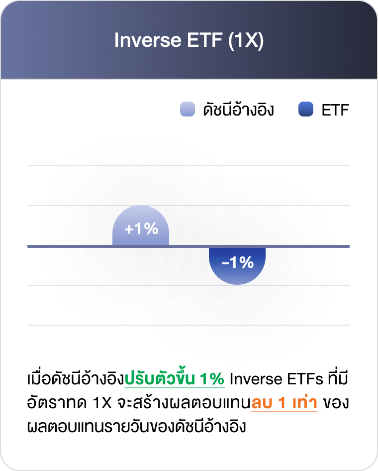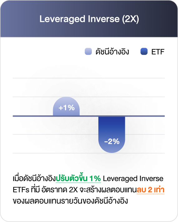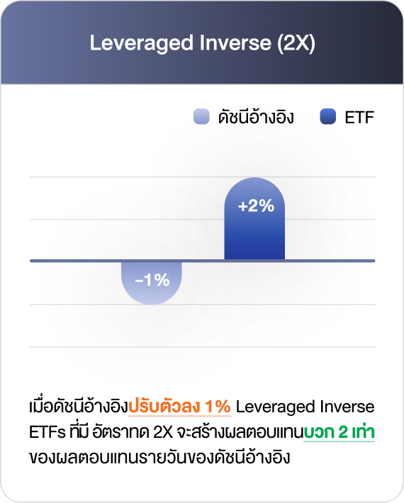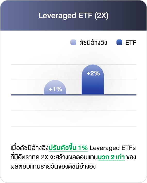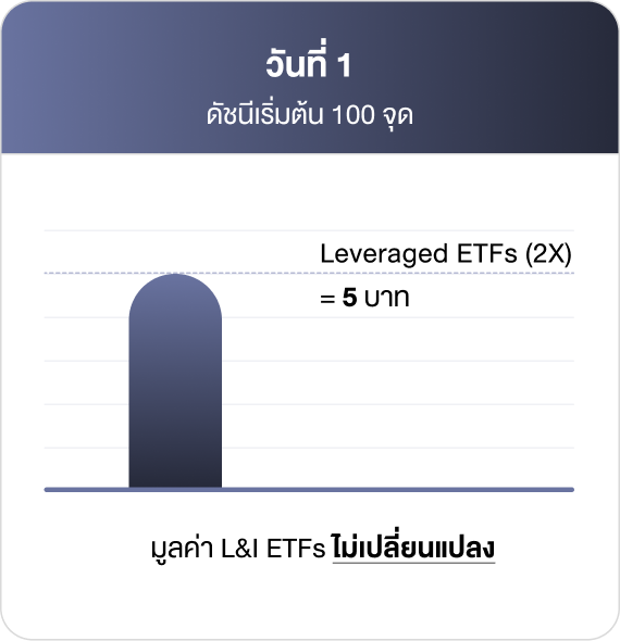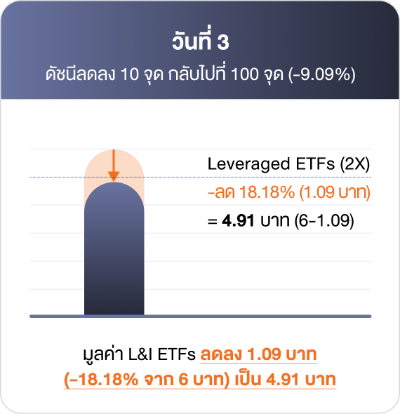 L&I ETFs ออกแบบเพื่อการลงทุนระยะสั้น มุ่งสร้างผลตอบแทนเป็นสัดส่วนกับดัชนีอ้างอิงเป็นรายวัน (Daily reset) และคำนวณผลตอบแทนแบบทบต้น (Compounding Effect) ซึ่งทำให้การถือครองเกินกว่า 1 วัน อาจให้ผลตอบแทนเบี่ยงเบนจากสัดส่วนการเปลี่ยนแปลงของดัชนี ที่มุ่งหวัง โดยเฉพาะในภาวะที่ตลาดผันผวน นอกจากนี้การจัดการกองทุนมีค่าใช้จ่ายที่เกี่ยวข้อง จึงอาจทำให้ผลตอบแทนของกองทุนแตกต่างจากการเปลี่ยนแปลงของดัชนี