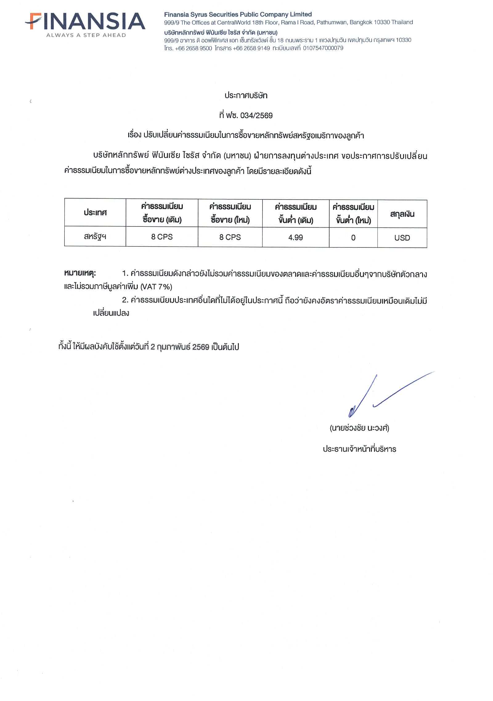 ประกาศยกเลิกค่าธรรมเนียมขั้นต่ำของหุ้นสหรัฐฯ