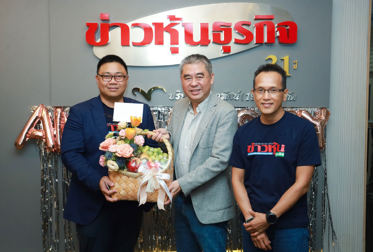บมจ.หลักทรัพย์ ฟินันเซีย ไซรัส โดย คุณสมภพ กีระสุนทรพงษ์ (กลาง) กรรมการผู้อำนวยการ ร่วมแสดงความยินดีเนื่องในโอกาส หนังสือพิมพ์รายวันข่าวหุ้นธุรกิจ ครบรอบ 31 ปีก้าวสู่ปีที่ 32 พร้อมมอบกระเช้าแสดงความยินดี โดยได้รับการต้อนรับจาก คุณบูรพา สงวนวงศ์ รองผู้อำนวยการ หนังสือพิมพ์ข่าวหุ้นธุรกิจ เมื่อวันที่ 19 กันยายน 2568 ณ หนังสือพิมพ์ข่าวหุ้นธุรกิจ บริษัท บูรพาทัศน์ 1999 จำกัด