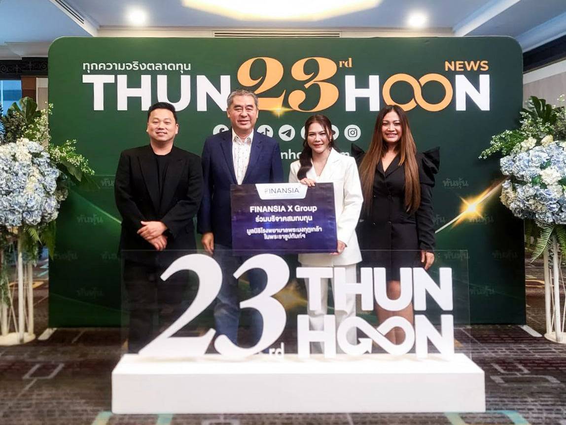 FINANSIA X Group นำโดย คุณสมภพ กีระสุนทรพงษ์ กรรมการผู้อำนวยการ ร่วมแสดงความยินดีกับคุณณัฏฐ์ชญา ปุริมปรัชญ์ภัทร ประธานเจ้าหน้าที่บริหาร บริษัท ทันหุ้น จำกัด ในโอกาสหนังสือพิมพ์รายวันทันหุ้น ครบรอบ 23 ปี พร้อมมอบเงินบริจาคสมทบทุนมูลนิธิโรงพยาบาลพระมงกุฎเกล้า ในพระราชูปถัมภ์ฯ ณ โรงแรมโกลเด้น ทิวลิป ซอฟเฟอริน กรุงเทพฯ เมื่อวันที่ 26 กุมภาพันธ์ 2569